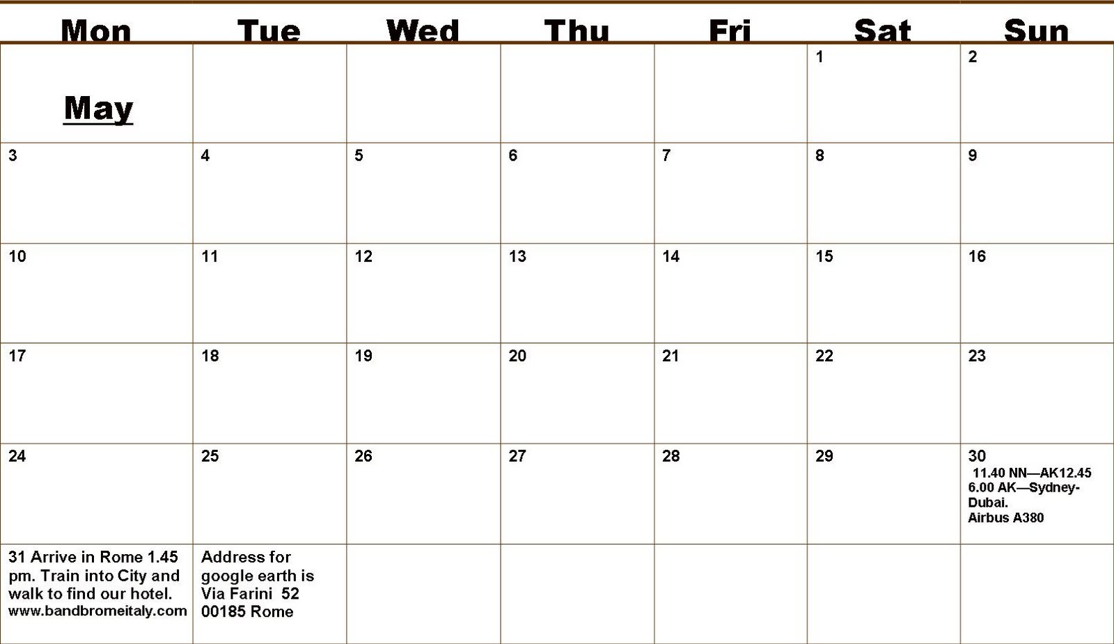 I put our itinerary on to a calendar a while back and now and again, as we've finalised plans and bookings for various places, I've popped a bit of information on to the calendar.